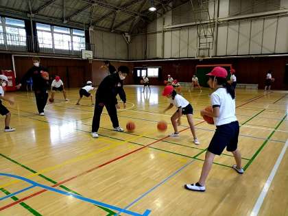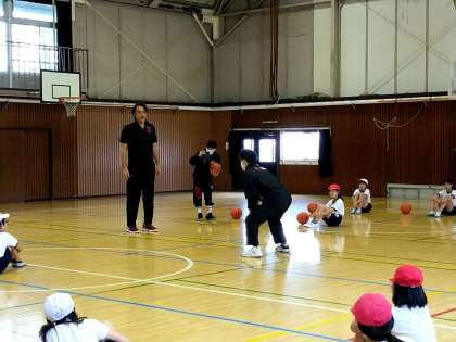 内容は、八王子市のプロバスケットボールクラブである「東京八王子ビートレインズ」の方をお招きし、本格的なバスケットボールの技を教えていただくというものです。