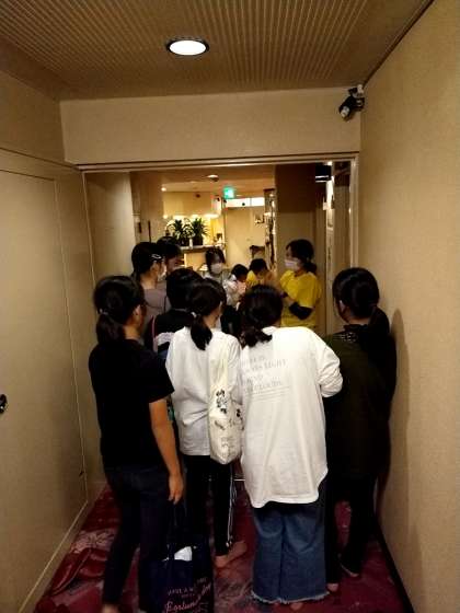 8時45分からお風呂が始まりました。本当は、外の温泉と館内の温泉と両方を利用してお風呂に入る予定でしたが、時間が遅くなってしまったために、館内のお風呂を6つのグループに分かれて入ることにしました。