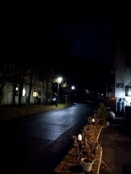 外の様子は、きれいな星空でしたが、少しだけ雨が降ったようで、路面が濡れていました。