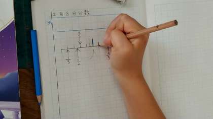 今日も授業では、2分の3や5分の7などの大きさを数直線の上に表す学習をしました。