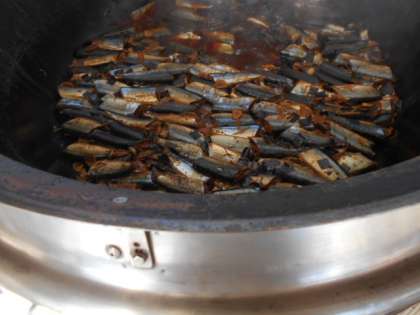 さんまの筒煮は 2時間以上かけて煮込みます。