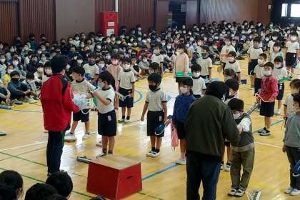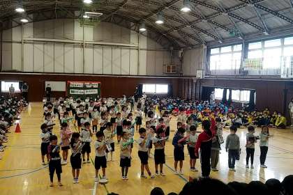 さあ、6年生を送る会が始まりました。出し物のトップバッターは1年生です。