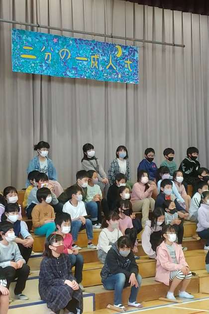 今日は、4年生の二分の一成人式が体育館で行なわれました。