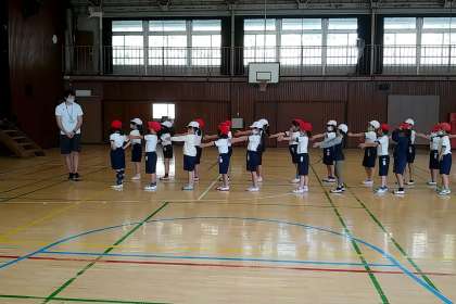 今日は初めてということで、並び方や体操の仕方など体育の授業の前にすることを確認しました。
