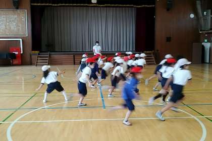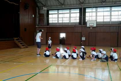 2年生の1つのクラスでは、2年生になっての初めての体育を体育館で、行いました。