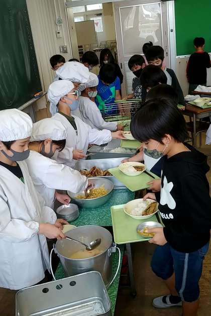 どの学年も初めてのクラスで初めての配膳だったのですが、2年生から6年生までどの学年も静かに上手に配膳ができていて感心しました。
