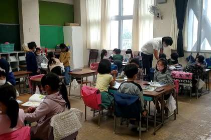 2年生の1つのクラスでは、国語で「ちいさい おおきい」という楽しい詩の勉強していました。