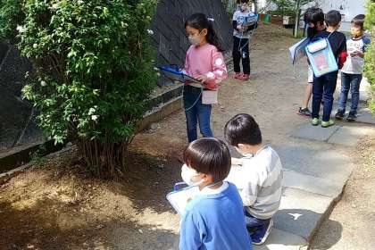 次に校庭の中で思い思いに春を見つけてスケッチをしていきました。