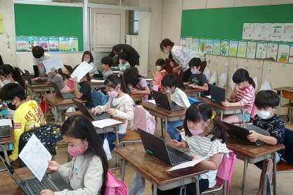 2年生の1つのクラスでは、学級活動の時間に、タブレットの学習をしました。