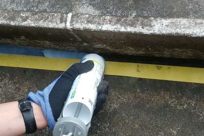 修理の方法はゴムパッキンは劣化してるため、まずは全部それを剥がします。そして、その溝に接着剤を塗って、シリコンシーラントを埋めていきました。
