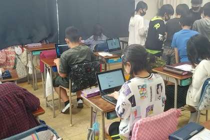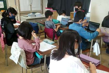 でもよく見ると、テストをしている子とパソコンをしている子がいました。