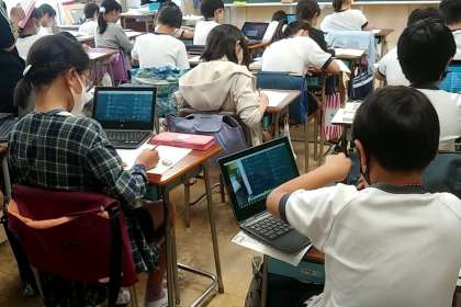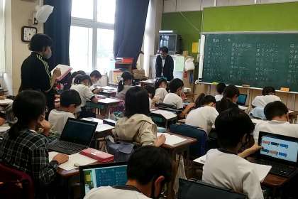 5年生の1つのクラスでは、算数で、タブレットを使って学習をしていました。内容は「小数×整数」です。