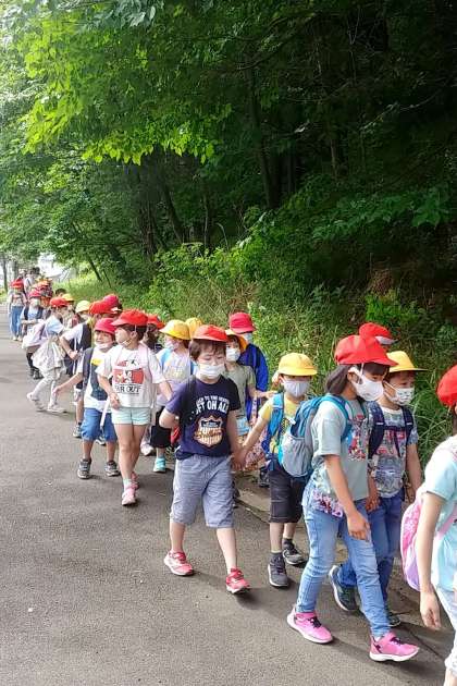 とっても上手に久保山公園まで歩いて来ることができました。2年生は道路側、1年生は内側でしっかり2年生が1年生を守ってきました。