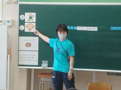 今日はまず、「よし」を確認しました。「よし」とは、「よいしせい、しずかに」ということです。わかりやすいネーミングでソーシャルスキルをおさえていきます。