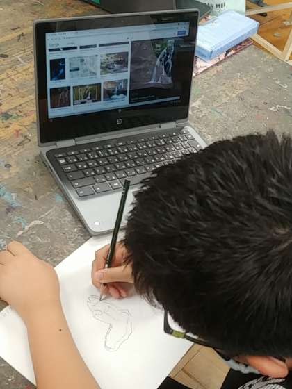 子どもたちは、インターネットからの情報をヒントに、設計図を書きました。