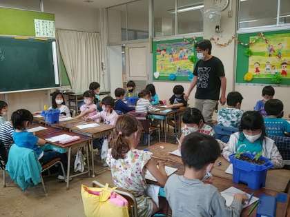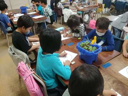 1年生の1つのクラスでは、生活科でアサガオのふたばの観察をしました。