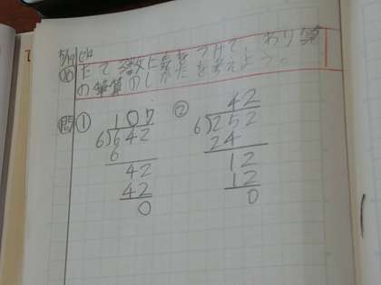 ところが「642÷6」をやってみたら、百の位で計算したら割り切れてしまい、次の十の位をおろそうとしたら、その中には6がなく…。