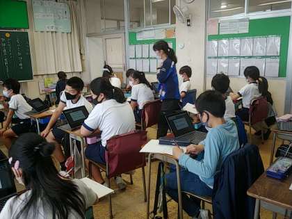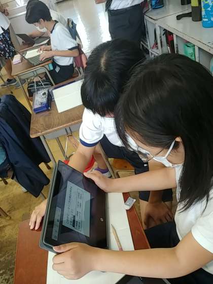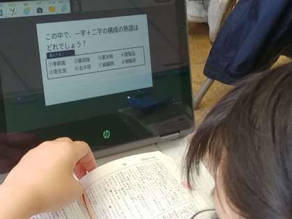 6年生の1つのクラスでは、国語で「熟語」の学習をしていました。これまでなら、この「熟語」は、教科書をみんなで読んで、辞典などを利用して、いろいろな熟語を調べ、それをノートに書き、書いたものを黒板に紹介しながら共有していました。
