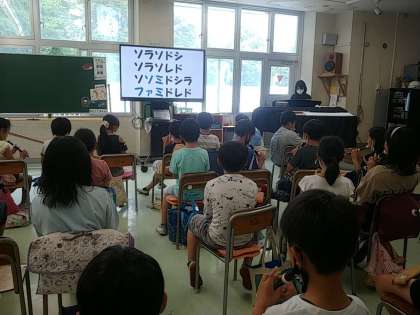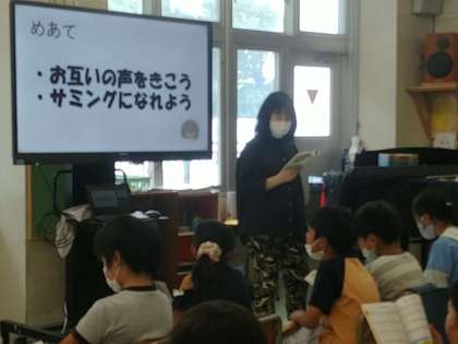 子どもたちは、サミングを意識して、「ハッピバースデートゥーユー」の曲を演奏していました。最後の盛り上がりにサミングが出てきます。