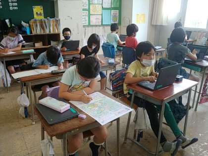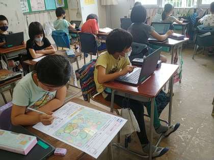 でもこれまでのテストタイムと違うところは、終わった人の活動です。これまでは、終わった人は読書やお絵描きなどの活動でしたが、タブレットが登場して以来、終わった人はタブレットを使ってタイピングなどをしていました。