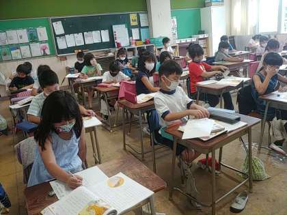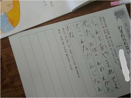 2年生の1つのクラスでは、道徳で「わすれられないえがお」の学習をしていました。内容項目は「正直・誠実」です。バスの中で思わず隣の女性の足を踏んでしまった女の子。謝りたいけど、怖い‥。そんな気持ちでいたのですが、勇気を出して謝ったことで、清々しい気持ちになったという教材です。