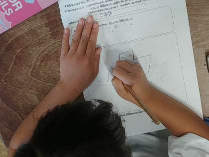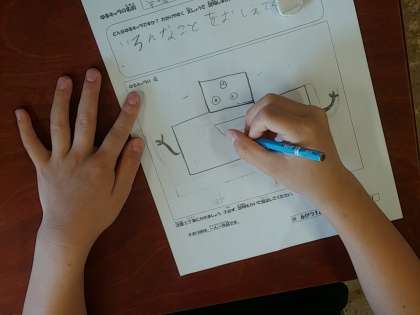 今日は2年生が休み時間に、ゆるきゃらを考えて応募用紙に書いていました(^^)!