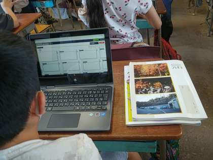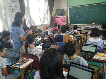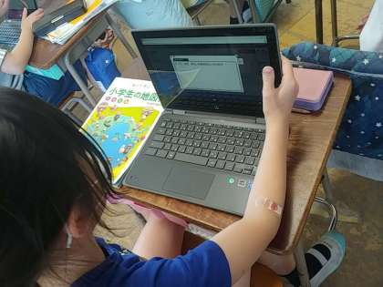 今日は、一つ一つ使い方を先生から教えてもらって、最後にみんなの意見を広場で確認しました。子どもたちは、みんなの考えが一斉に出されていることに感動していました。