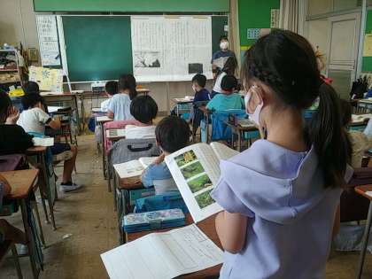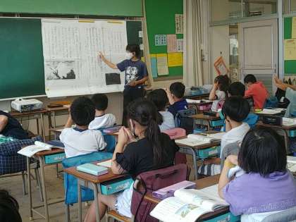 授業では、まず本文を音読しました。説明的な文章の音読は難しいのに、読んだ子は上手に読んでいました。すごいですね!