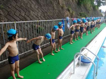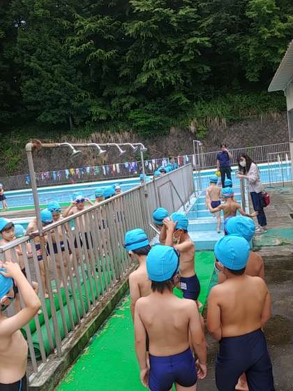 今日の1年生は、プールの割当日でした。しかし、気温が上がらなかったため、プールに入ることはやめることにしました。そのかわりプールに入る前の練習をしました。