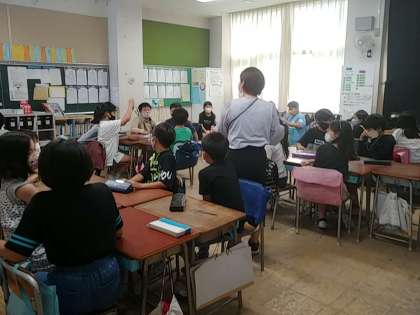 授業では、まず校長先生のお話を聞いた感想の発表から入りました。子どもたちは、この講話をとても良く聴いていて、内容を理解していました。