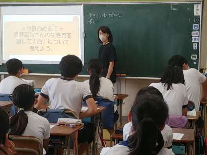 授業では、この星野富弘さんの生涯を学び、星野富弘さんの生き方を通して「命」について考えていきました。
