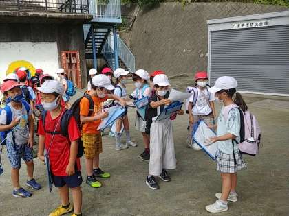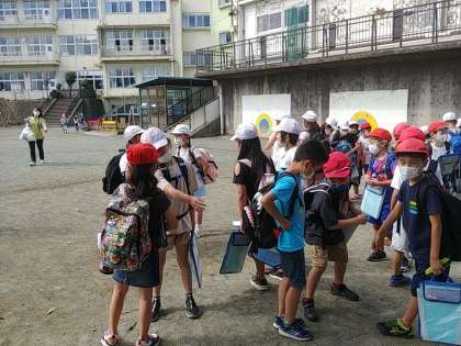 集合場所に集まる子どもたち、みんなニコニコ(^^)!