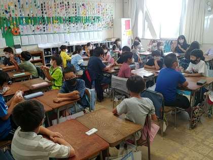今日の4年生の1つのクラスでは、国語で百人一首ならぬ、「七人一首」の大会が行われていました。百人一首は、百人が一首づつ集めてできていますね。では、なぜ七人一首なのかというと、短歌を学ぶ今回の教科書の単元には、七人の人の短歌が紹介されていて、それを集めたので「七人一首」となったのです(笑)