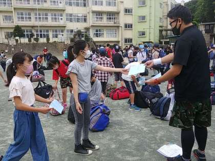 集合したら、まずは健康観察カードを提出します。