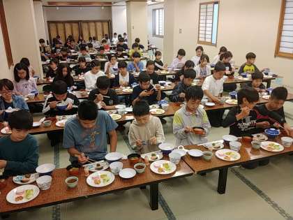 2日目の朝の朝食です。元気いっぱいな子どもたち。食欲もあります!