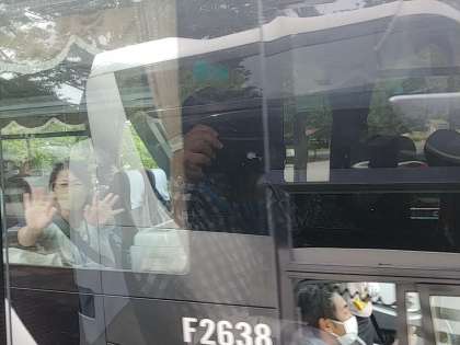 バスが1台ずつ出ていくたびに、子どもたちは他のバスの友達に手を振っています(笑)