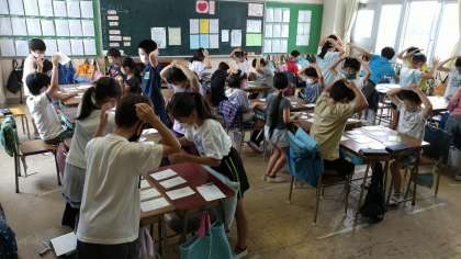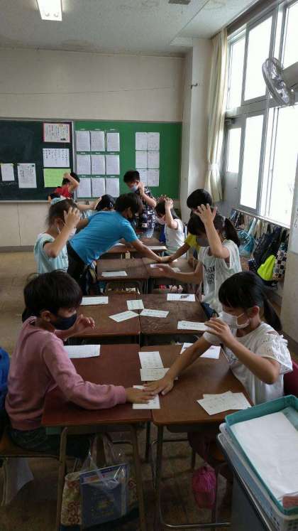 短歌を学んでいる4年生の教室では、百人一首…ではなく七人一首の熱い戦いが繰り広げられていました!