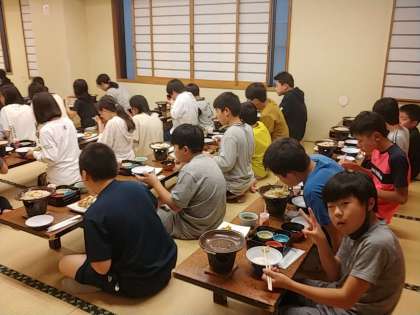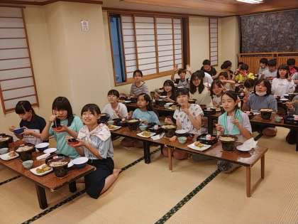3組は密を避けるために、2階で1つのクラスでいただいています。みんなしっかり食べて、おひつの中が全部なくなるまで食べたりもしています(^o^)