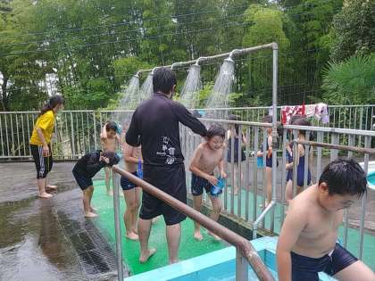 それでも1年生の子どもたち。水のシャワーにキャーキャー言いながらも、プールに入り、がんばりました。