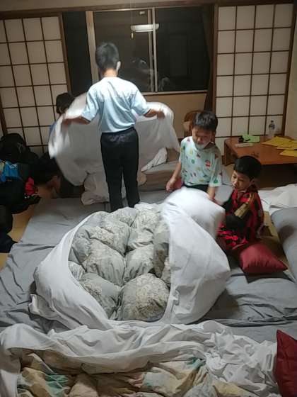 布団を敷くのは大変です(笑)