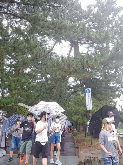 外はうっすらと霧雨が降っていたので、折りたたみ傘をさしました。