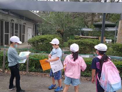 ポイントは班行動です。1年生はこれまでほとんど班行動をしていません。見たい動物が自分の考えと友達の考えが違ったり、先に行きたいけどガマンして友達にあわせたりと、班行動はなかなか難しいのです。