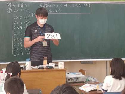 子どもたちは、5の段よりちょっとむずかしいと言っている子もいましたが、みんな元気に2の段を学ぶことができました!