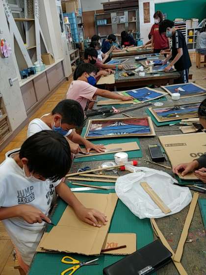 6年生は作品もすばらしいですが、額縁も妥協していません。考えに考えて額縁を作っています。ぜひ額縁も合わせて鑑賞していただければと思います^_^