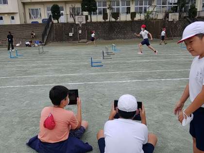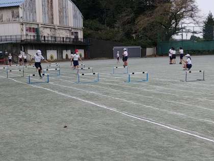 6年生の1つのクラスでは、校庭でハードル走をしていました。