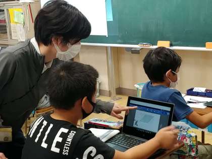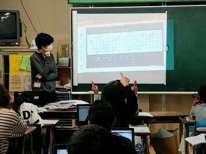 子どもたちは、学習用端末を使って高さを調べていきました。