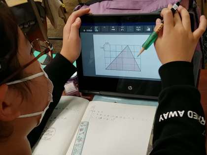 1つのクラスでは、オクリンクという機能を使って、学習用端末の中で図に高さを書いて、提出していました。