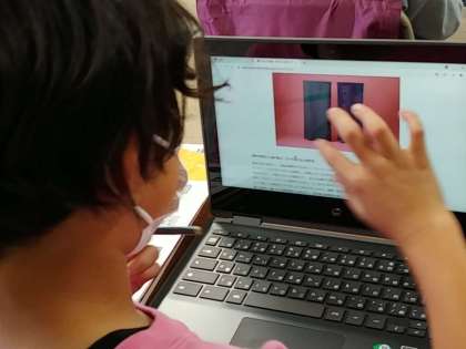子どもたちは、学習用端末でインターネットを使って伝統工芸品を調べていく中で、今まで知らなかった伝統工芸品というものを見つけることができました。