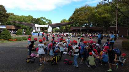 小宮駅ホームでは少しざわざわしていましたが、電車内ではおしゃべりもなくマナーよく過ごせました。拝島駅での乗り換えも問題なしで、無事に公園入口に到着です。