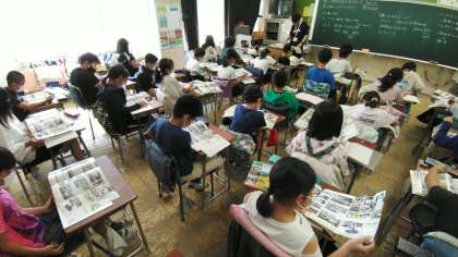 教科書と資料集を使って、自動車工場の工夫について調べていました。